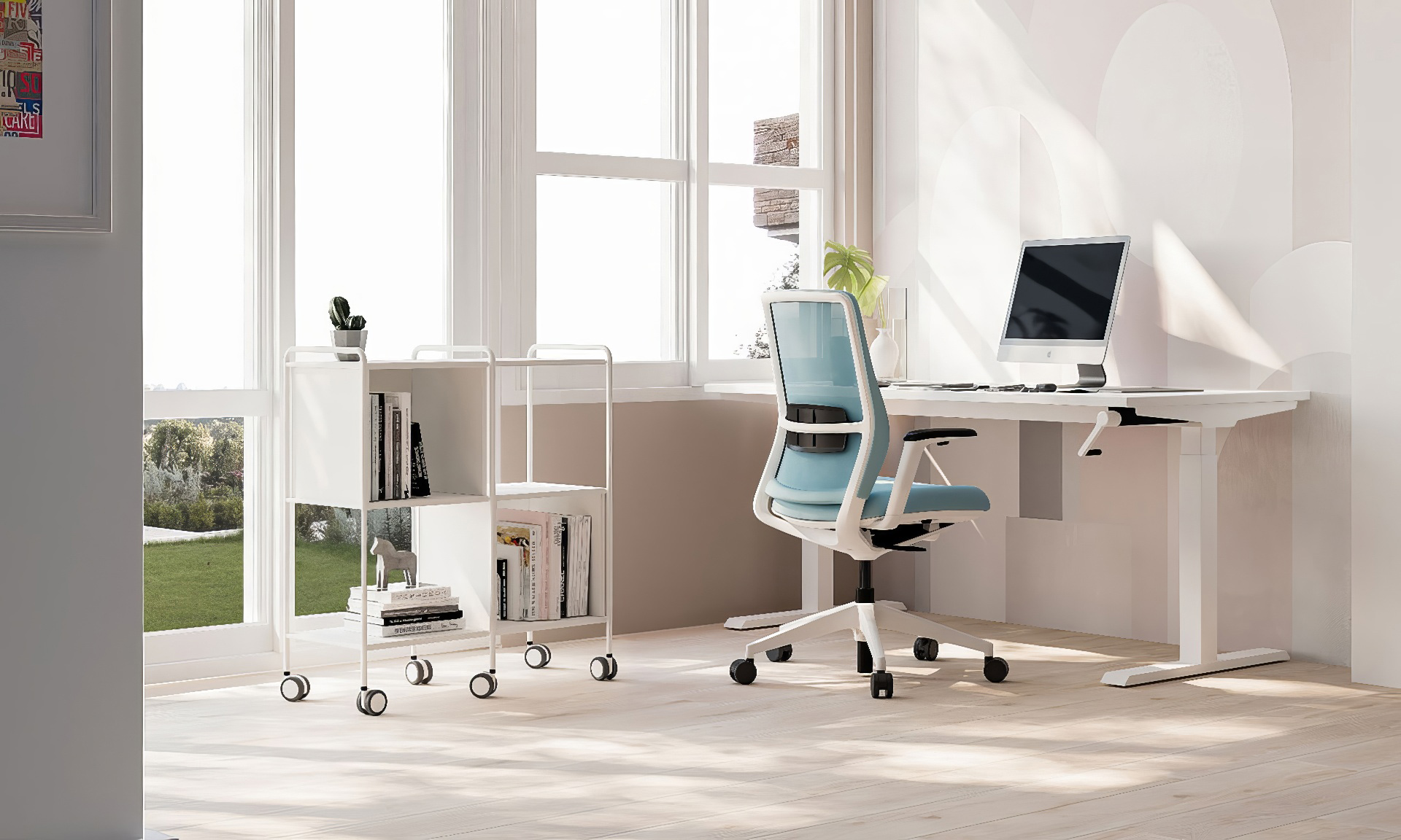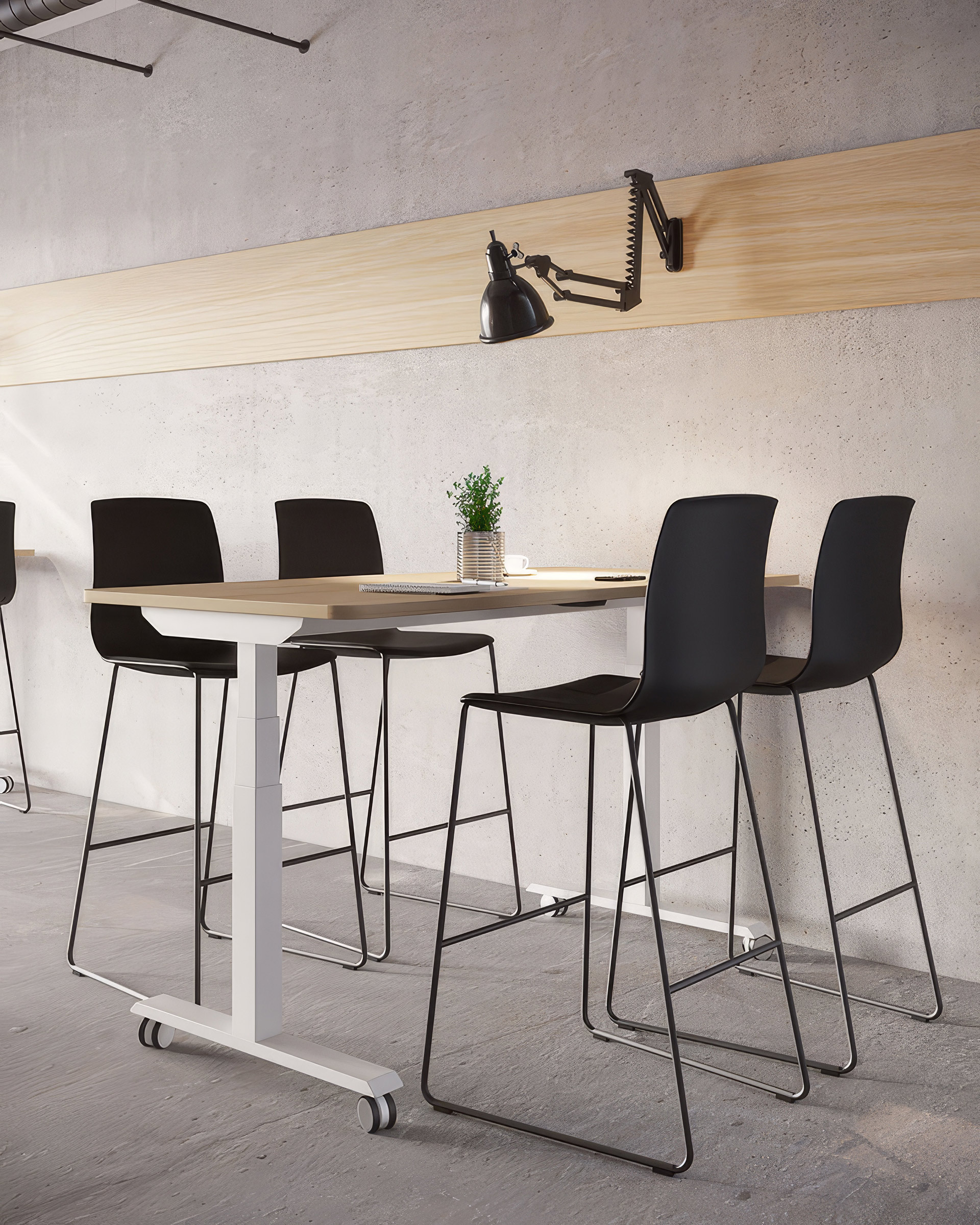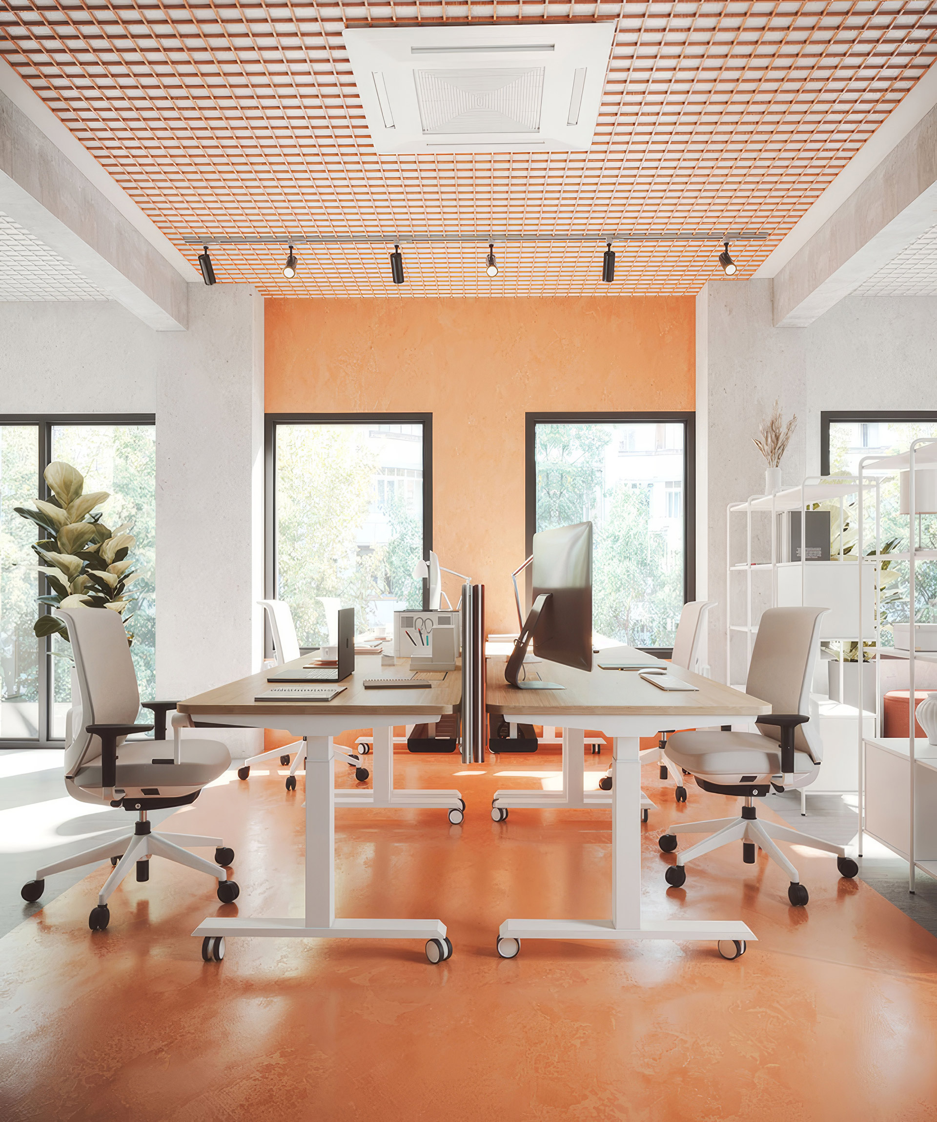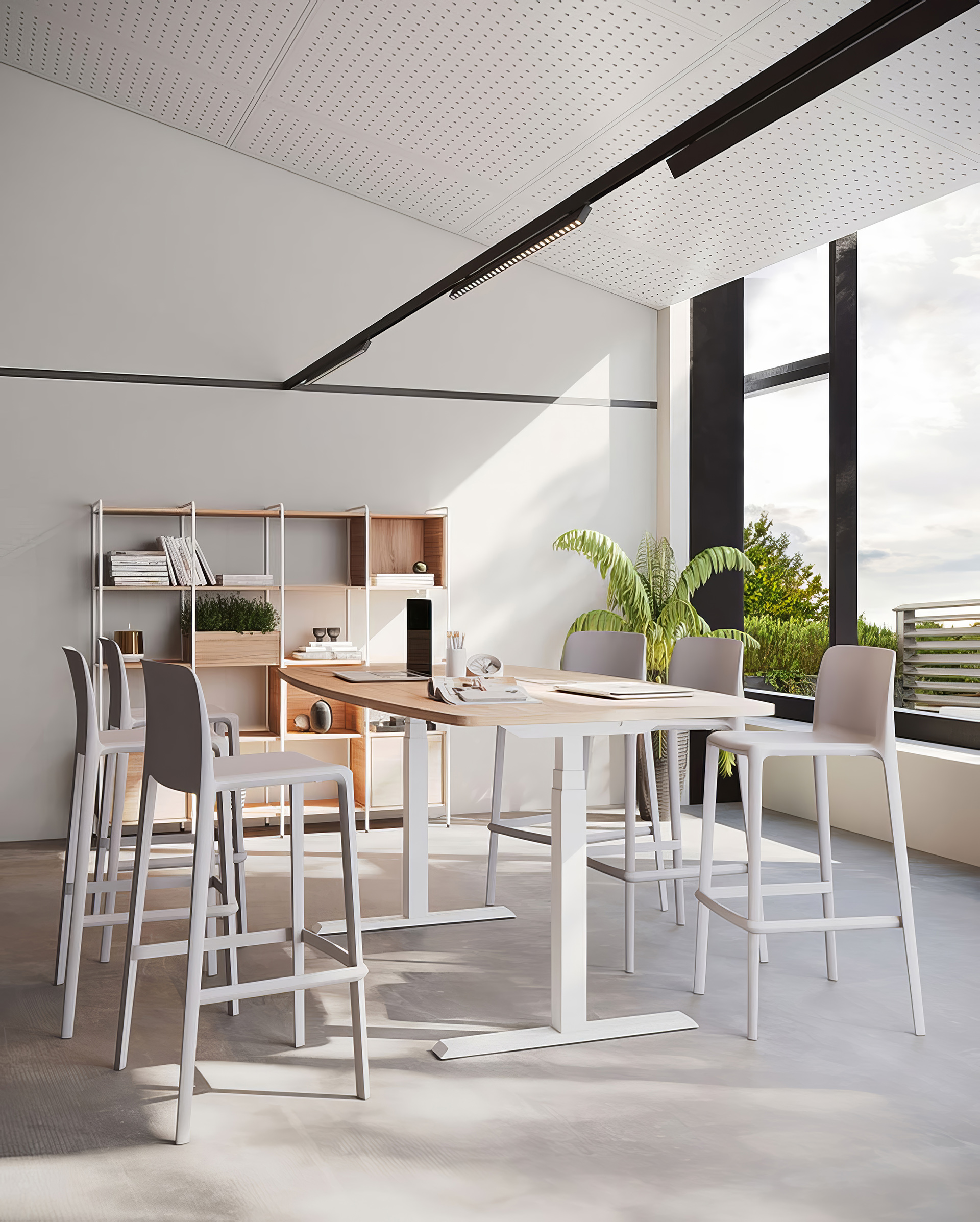 Destaca por su flexibilidad total, al incorporar ruedas que facilitan el desplazamiento. Gracias a su estructura con dos columnas de soporte, ofrece estabilidad y capacidad de carga, siendo ideal para reorganizar espacios con agilidad.
