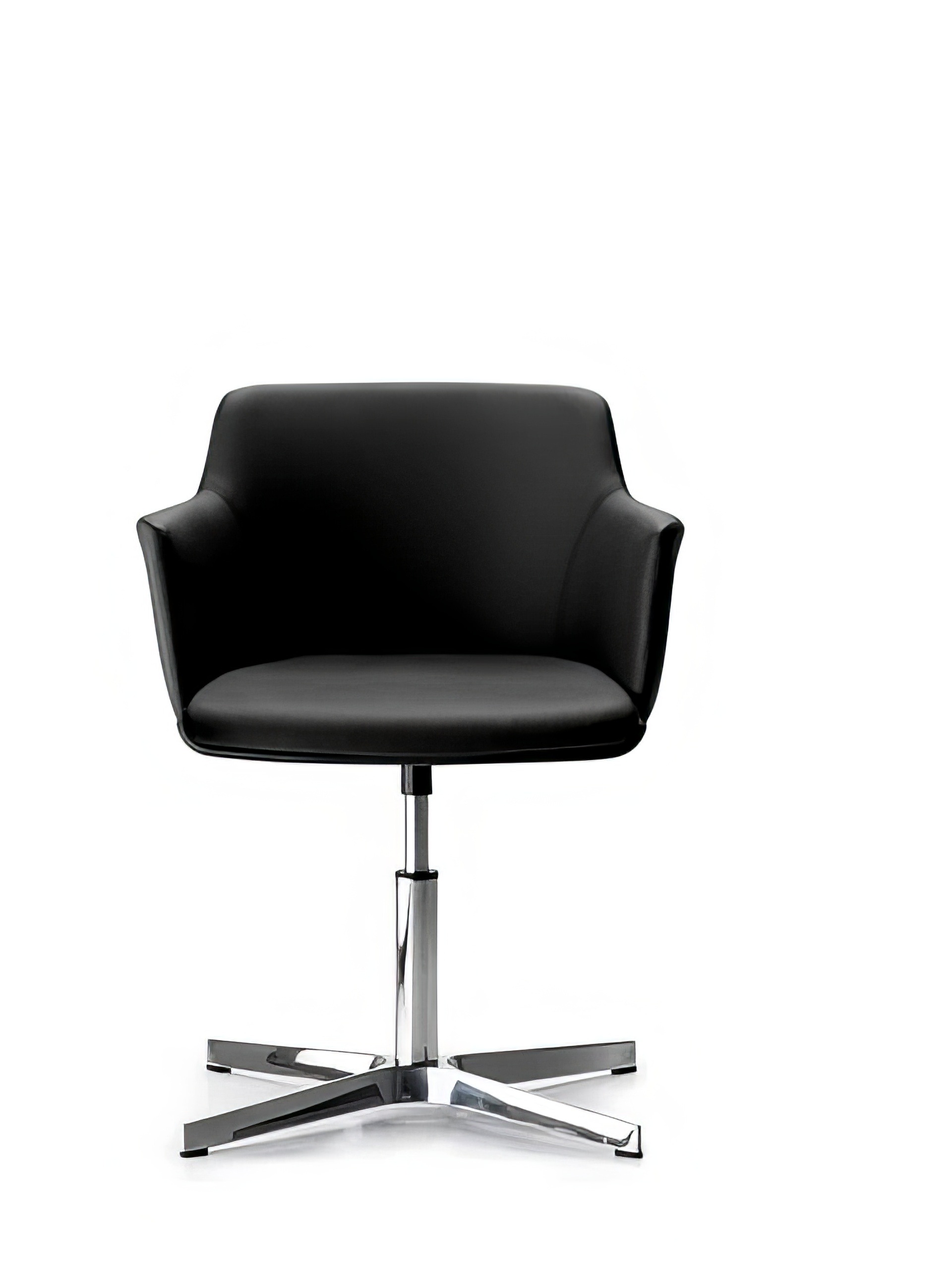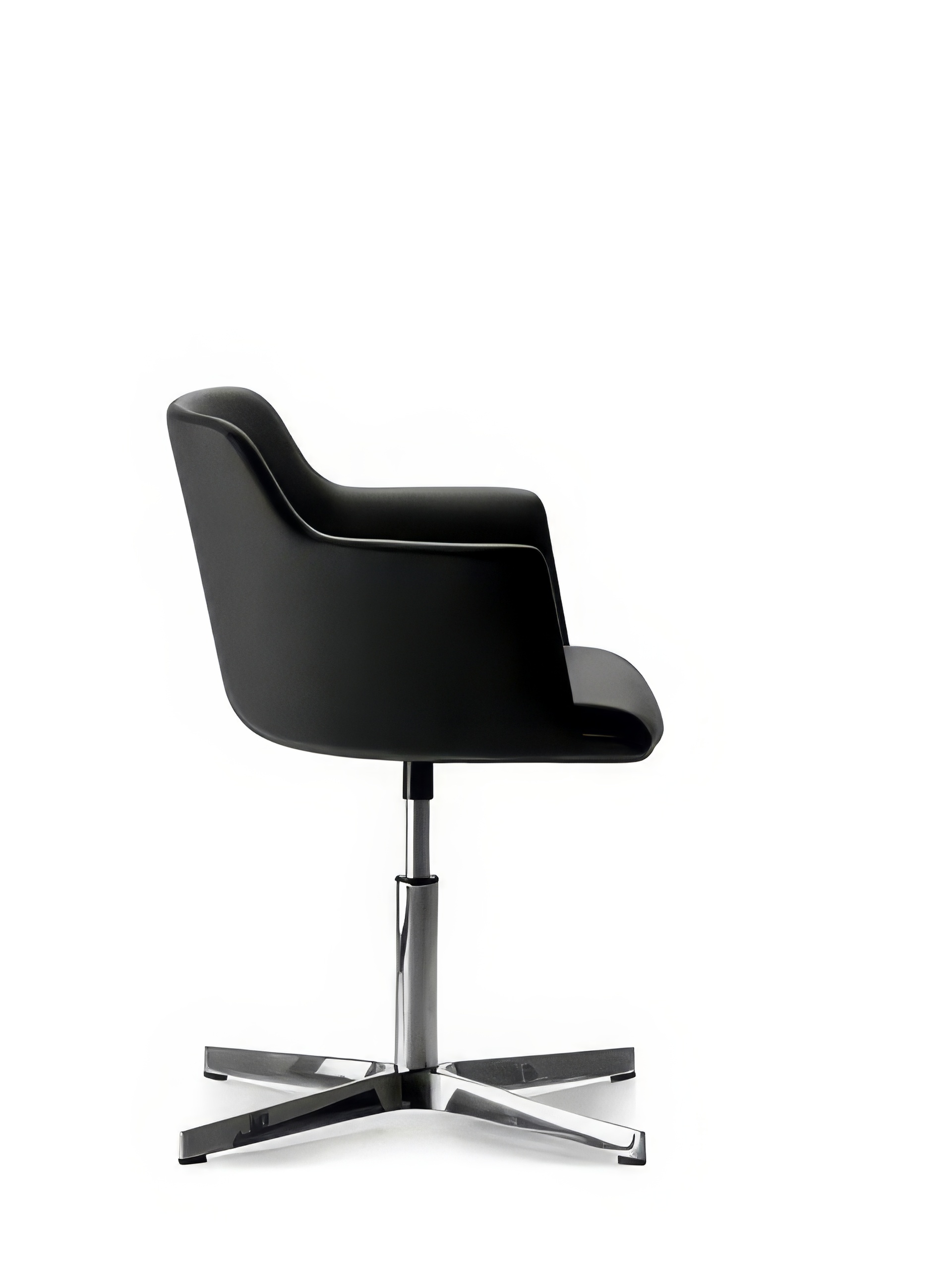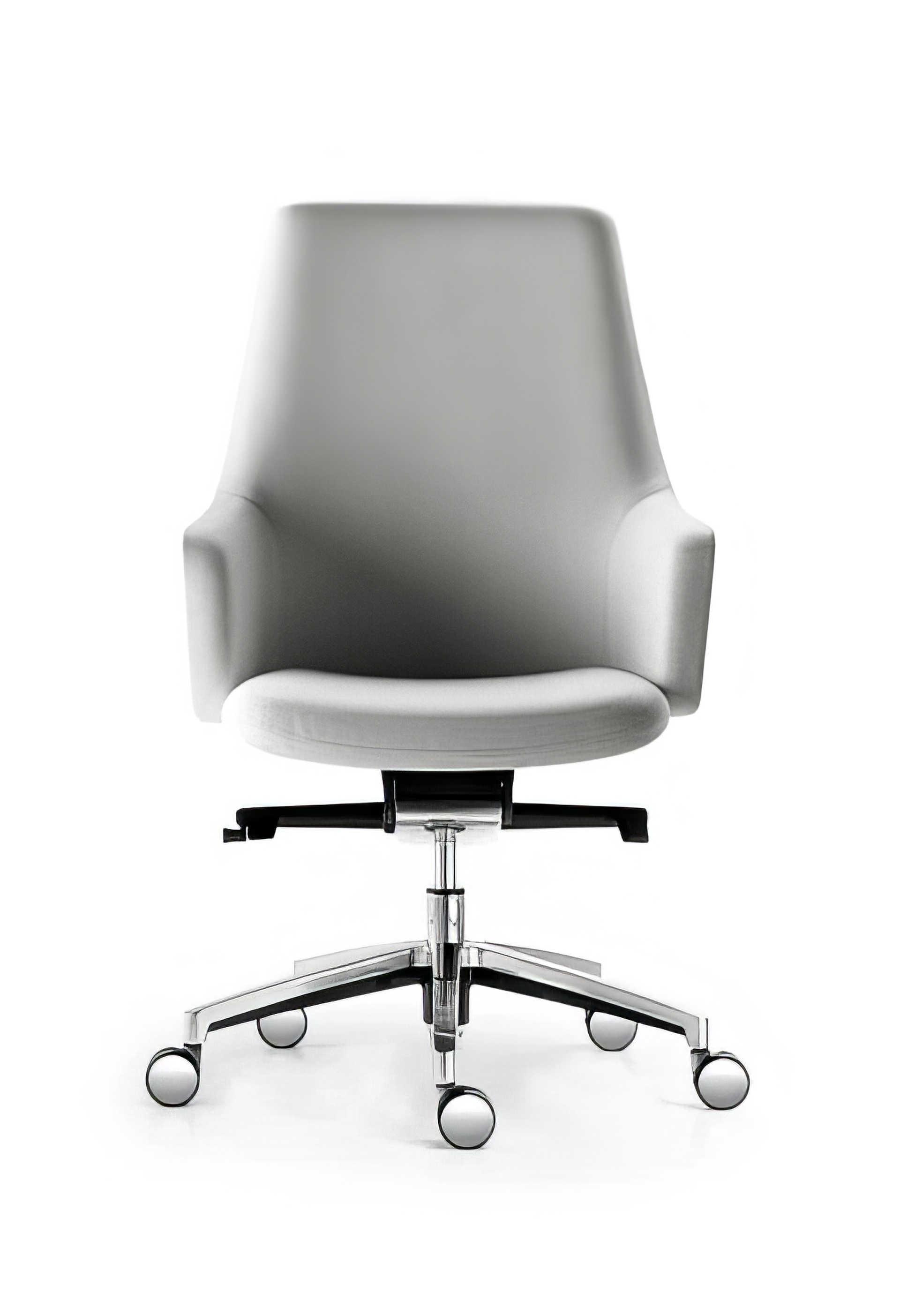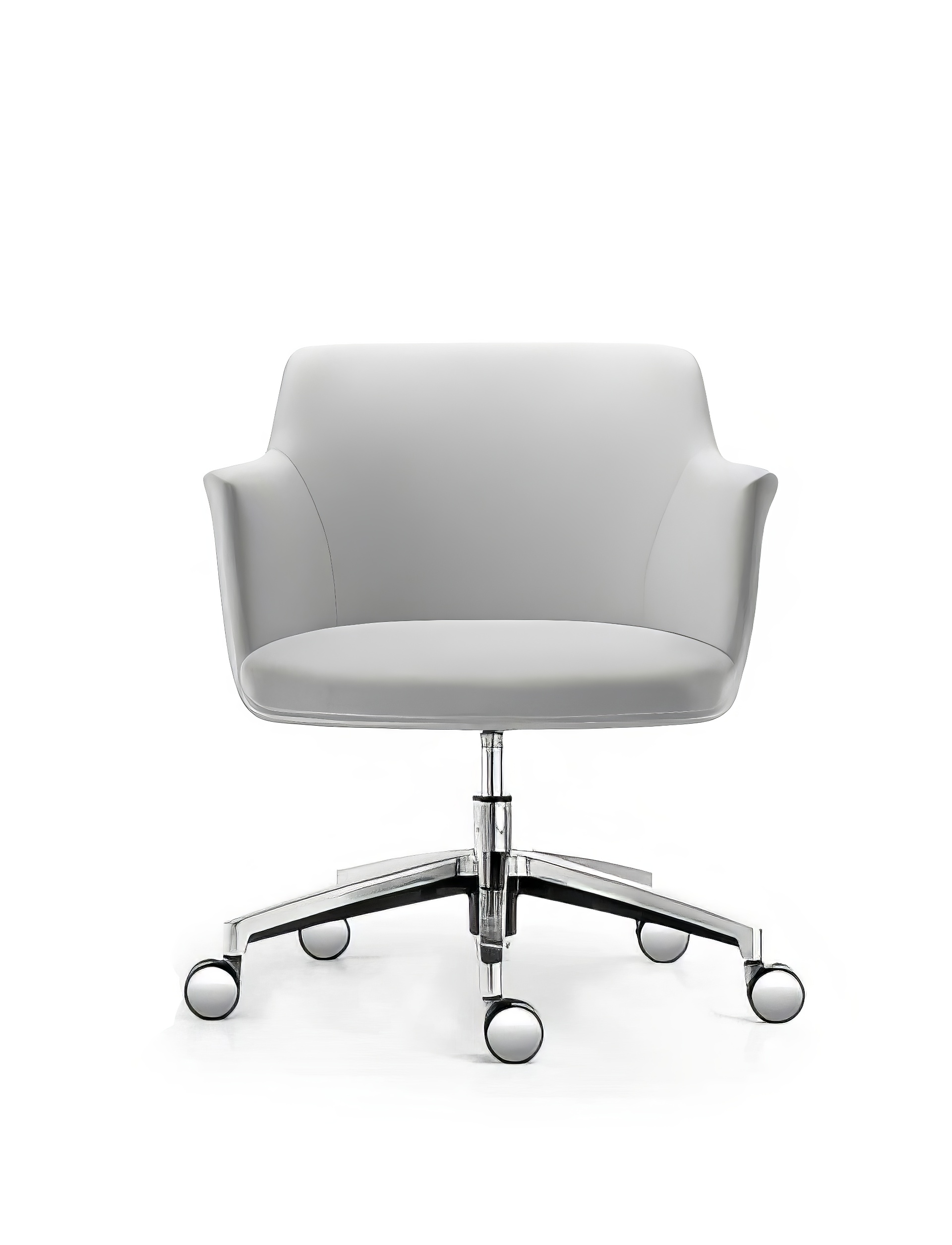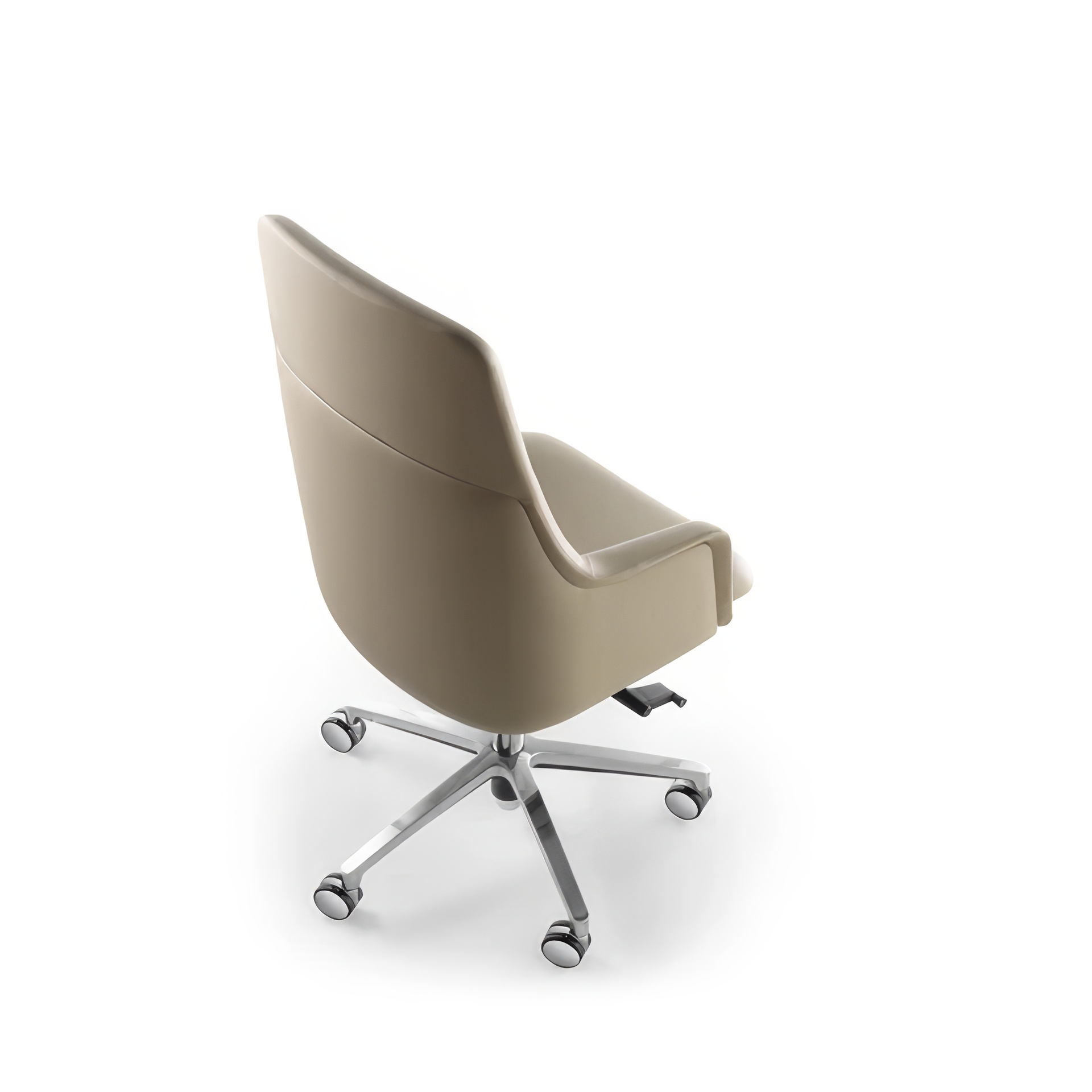 El mecanismo sincrónico oscila suavemente y permite el reclinado coordinado del asiento y respaldo. Gracias a ello, la Silla de dirección Cuore asegura una experiencia de uso dinámica y saludable en oficinas ejecutivas. La base giratoria en aluminio pulido añade estabilidad, movilidad y un acabado premium que refuerza la estética del espacio de trabajo.